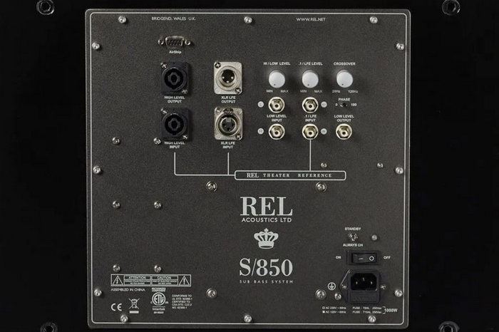 Für satten Power und beste Kontrolle sorgt ein REL 850-Watt-Pure-Class-D™ Verstärker. Dieser bietet High-Level Neutrik Speakon Anschlüsse sowie Low-Level Eingänge in RCA und XLR Ausführung. Natürlich können Uebernahmefrequenz, Phase und Volume präzise eingestellt werden. Für Heimkinoanwendungen ist ein direkter Eingang vorhanden.